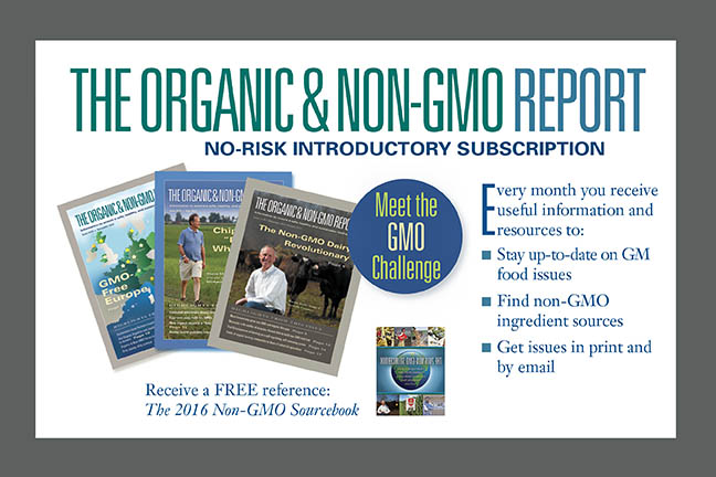 Started in 2001, The Organic & Non-GMO Report is a bi-monthly print news magazine alternating with a bi-monthly E-Newsletter focusing on threats posed by genetically modified foods and the fast-growing trend toward non-GMO and organic foods. The Organic & Non-GMO Report helps educate consumers about health and environmental risks of GM foods and offers information and resources on non-GMO foods. Another publication, The Non-GMO Sourcebook, is the world’s only “farm to fork” directory of non-GMO seeds, grains, ingredients, feed, and food products. Brands: The Organic & Non-GMO Report, The Non-GMO Sourcebook