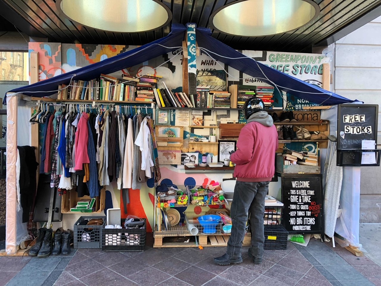 To brighten up the neighborhood, Smutney wanted to turn closed storefronts into little Free Store hubs, but official requests to storeowners and the city were ignored. So Smutney found her own outdoor space she thought could work well for a Free Store in Williamsburg.