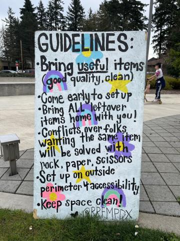 In Portland, Oregon, organizers (who prefer to remain anonymous to not take credit for the community-wide effort) have run a RRFM in Gateway Discovery Park every April-October since 2021. They initially learned about the concept of RRFMs from a TikTok video, and within a month, created signs and guidelines to host the first RRFM in east Portland.